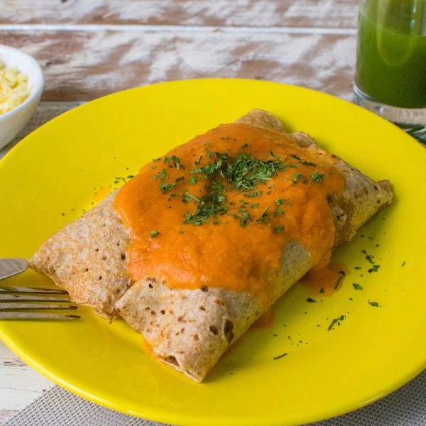 Essa panqueca vai conquistar seu coração! Feita com uma massa integral leve, ela é recheada com carne de patinho moída e coberta com um molho de tomate caseiro irresistível, feito com tomates fresquinhos e um toque de temperos especiais. A combinação perfeita de sabor e leveza, ideal para aqueles dias em que o prazer de comer bem fala mais alto.